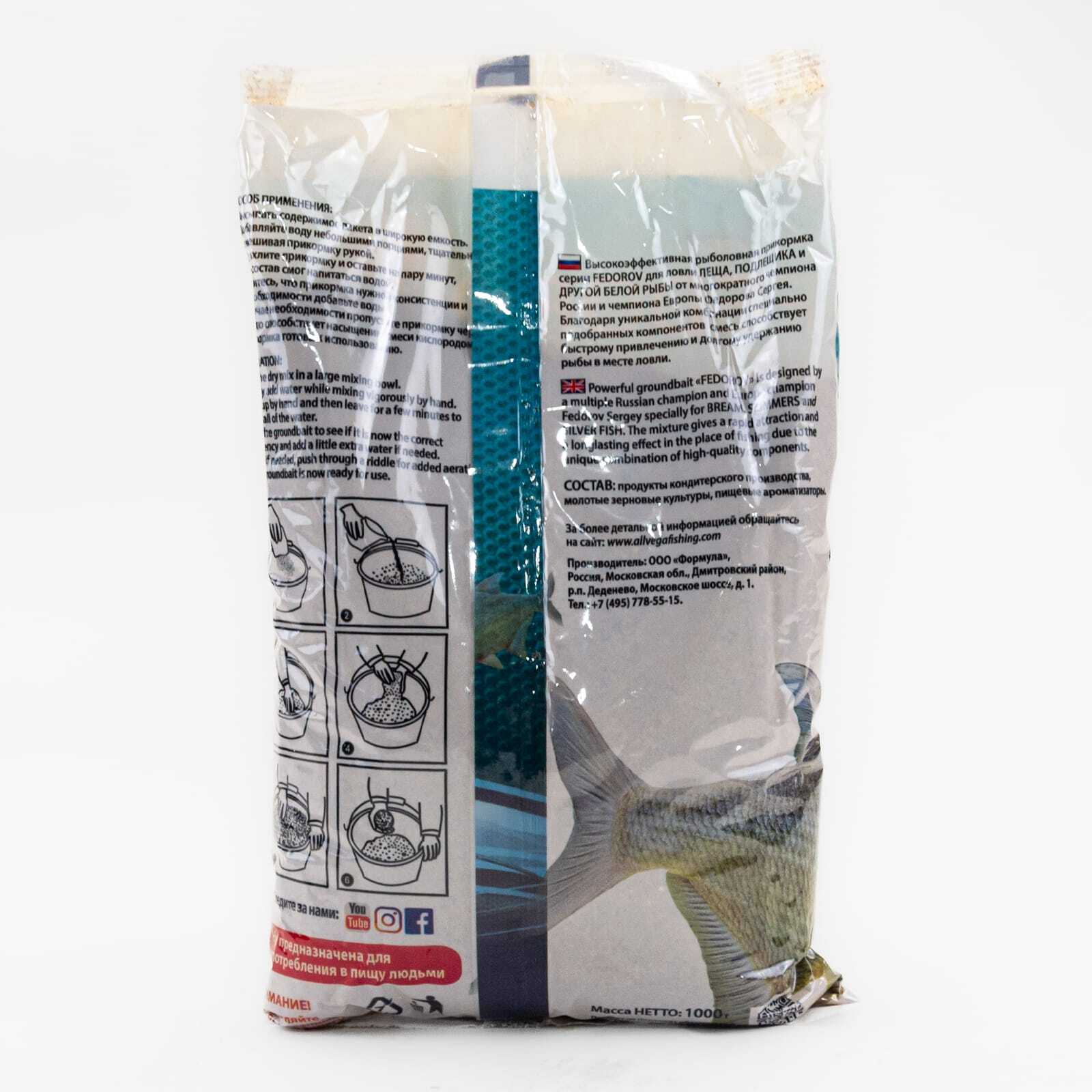 - Основа: высококачественная растительная смесь, включающая молотые зерновые культуры, сухое молоко, рыбную муку и прочие компоненты, привлекающие рыбу.