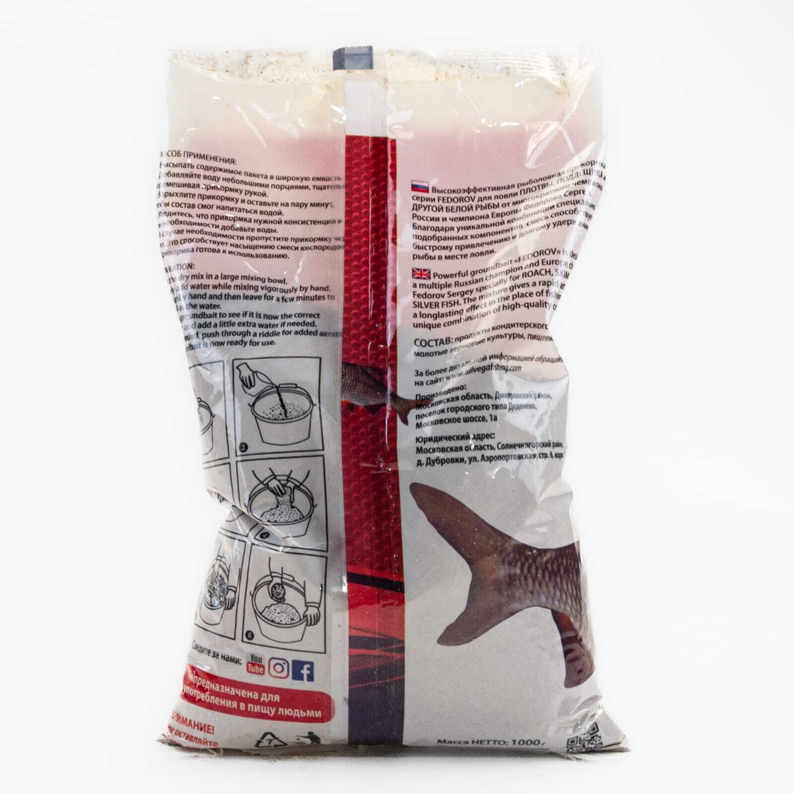 - Основа: высококачественная растительная смесь, включающая молотые зерновые культуры, сухое молоко, рыбную муку и прочие компоненты, привлекающие рыбу.