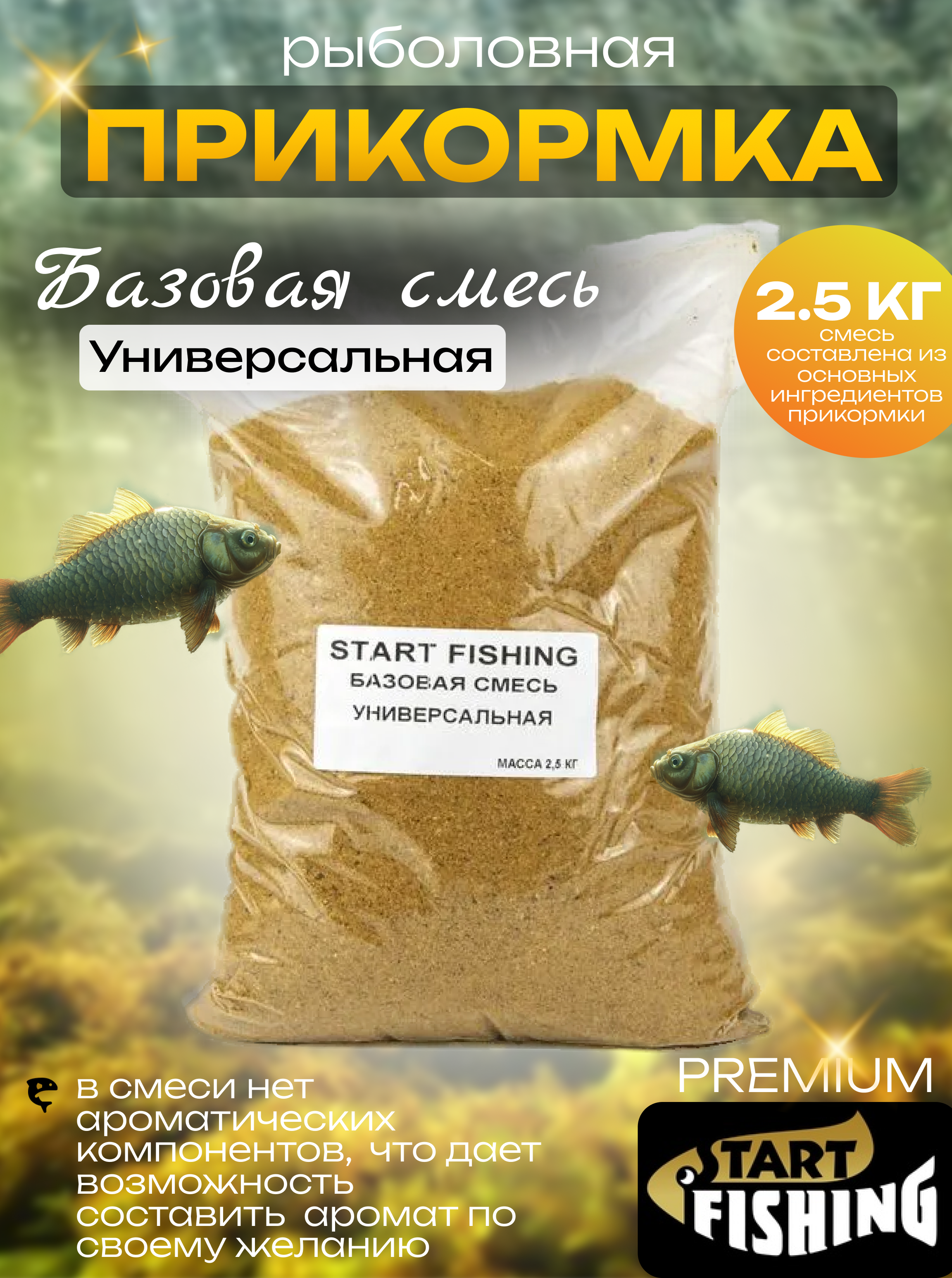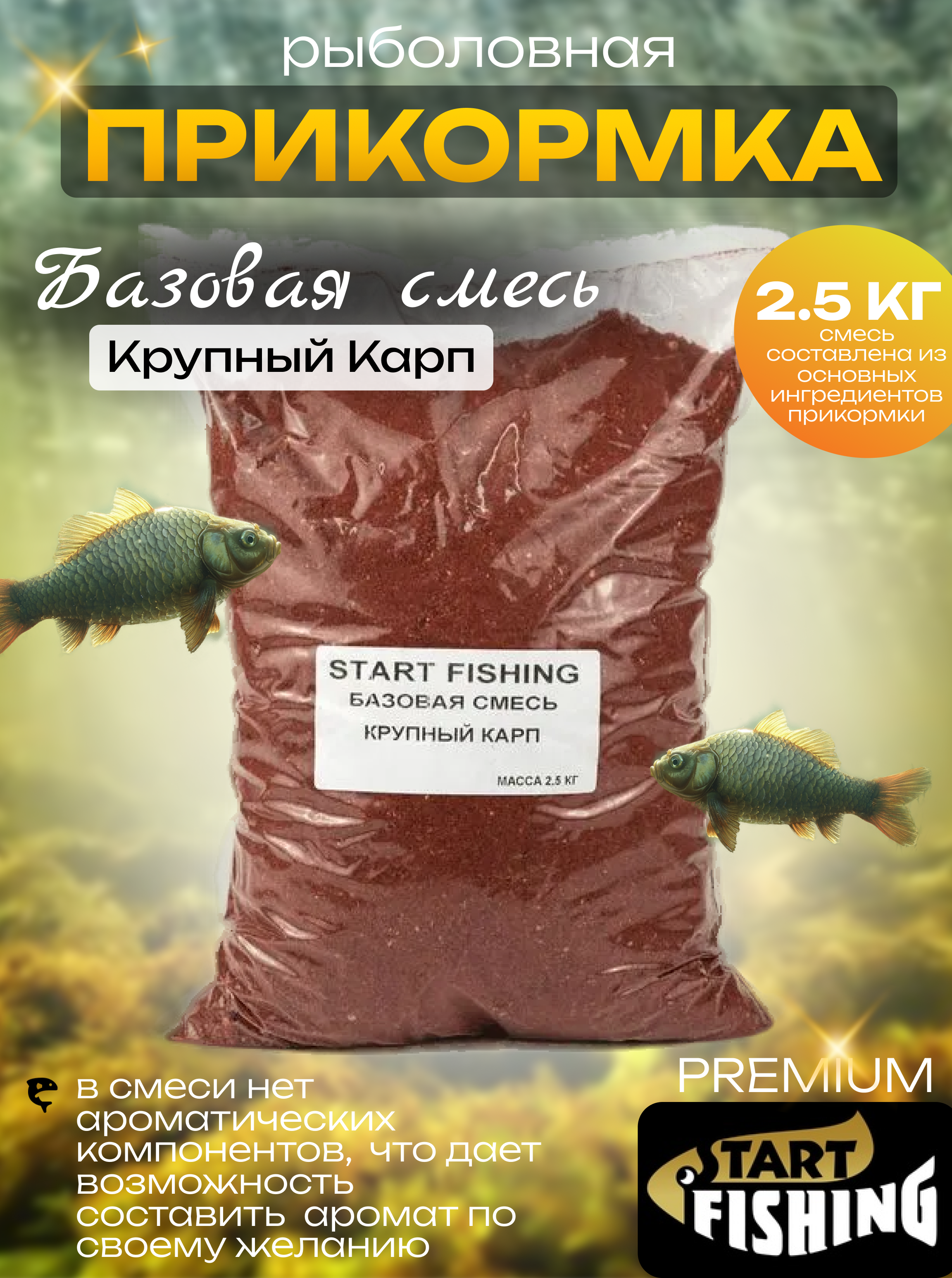 В Базовой смеси не содержится ароматических компонентов, в связи с чем у рыболова появляется возможность составить требуемый ароматический букет по своему желанию.