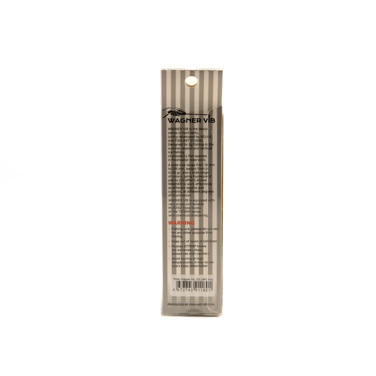 FA Relax Wagner Vib разработан Fish Art Studio для компании Relax. Приманка предназначена для ловли хищника со льда. Прекрасно себя зарекомендовала при ловле судака, щуки и окуня.