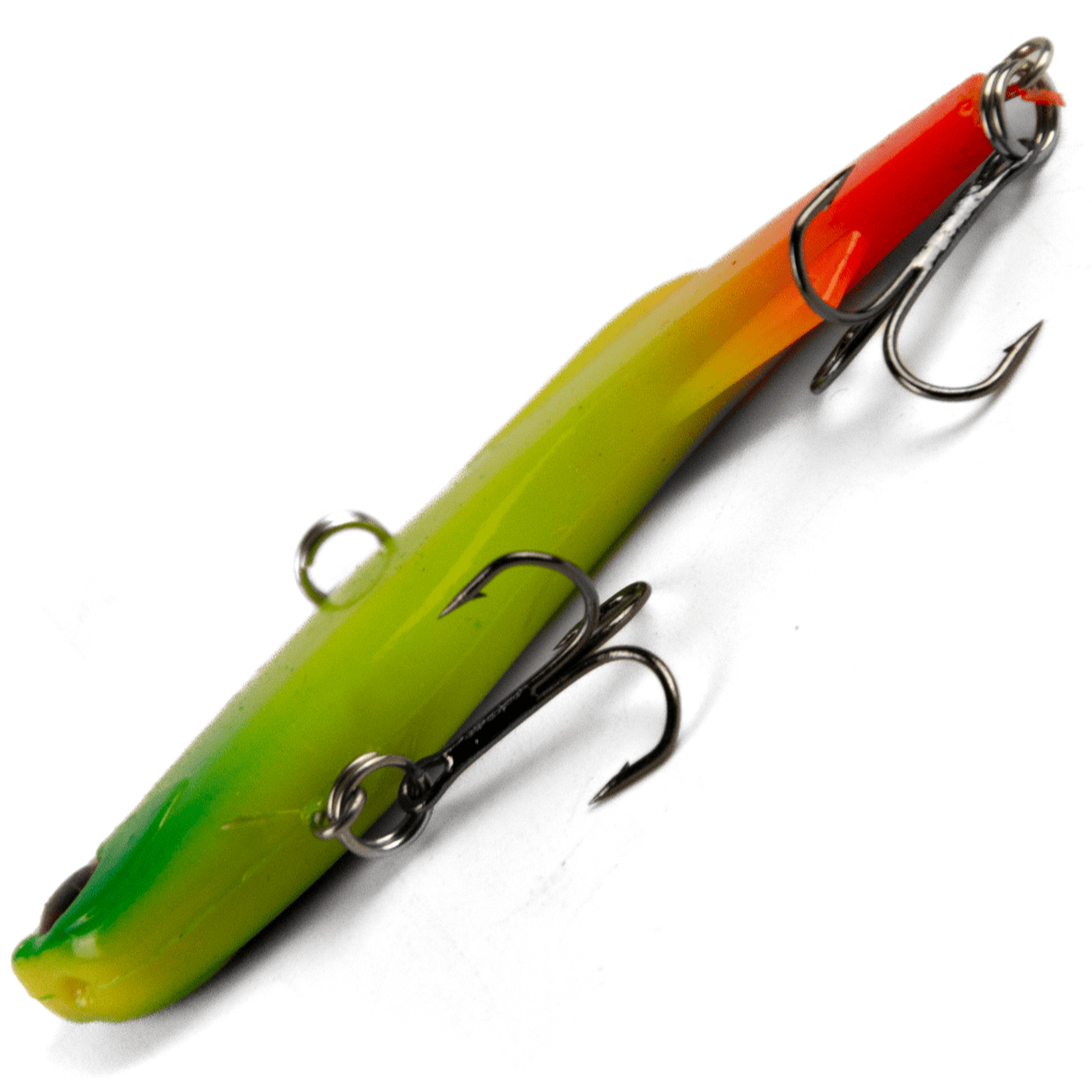 Раттлин выполнен из прочного силиконового материала, здесь есть несколько плюсов: первый - он абсолютно "тихий" и это положительно сказывается на клеве осторожной рыбы; второй - когда судак атакует по раттлину и промахивается, он не так чувствует силикон, в отличие от жесткого пластика, зачастую хищник повторяет атаку и все таки садиться на острые тройники приманки.
