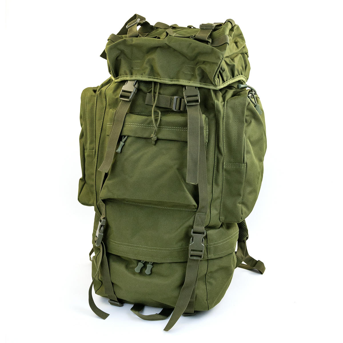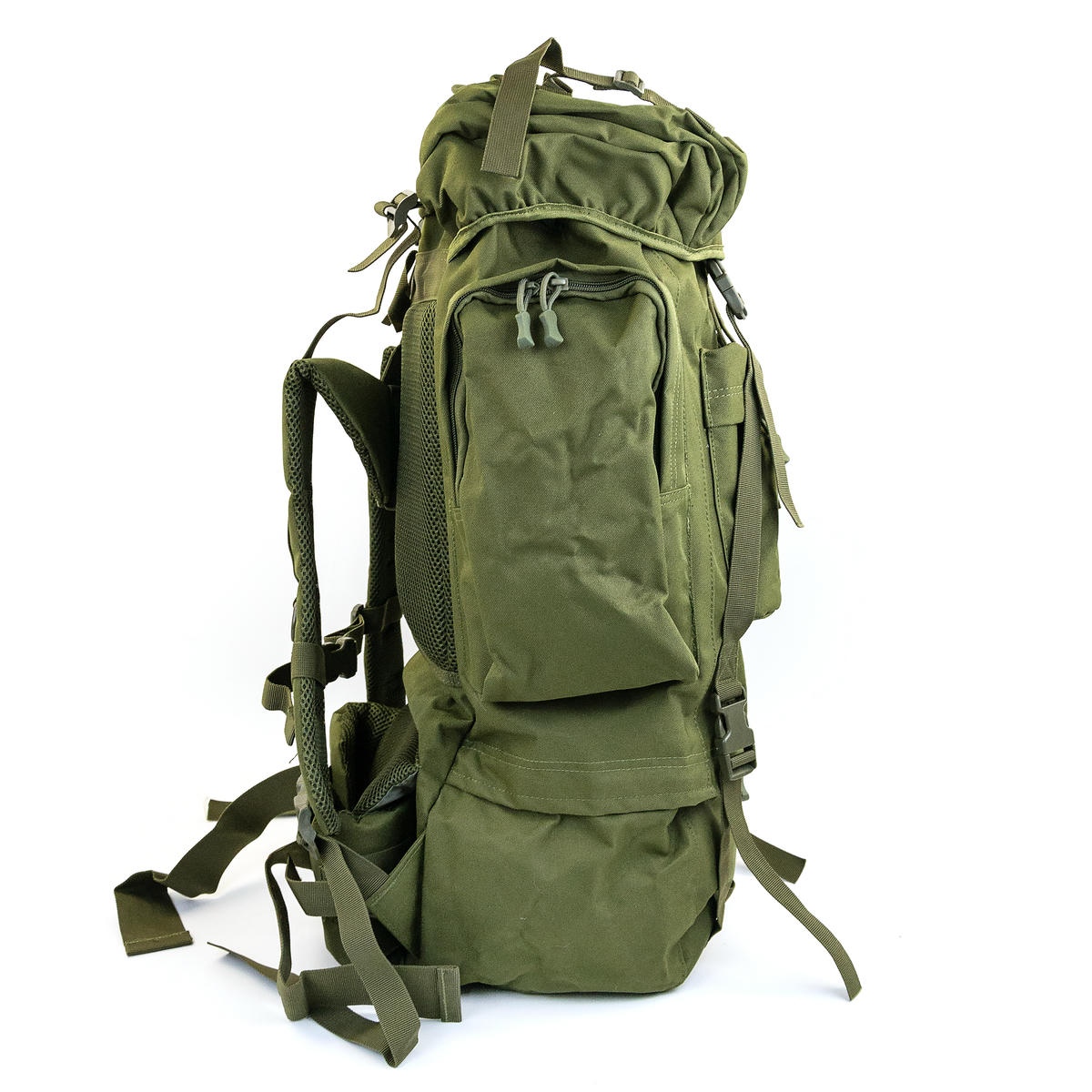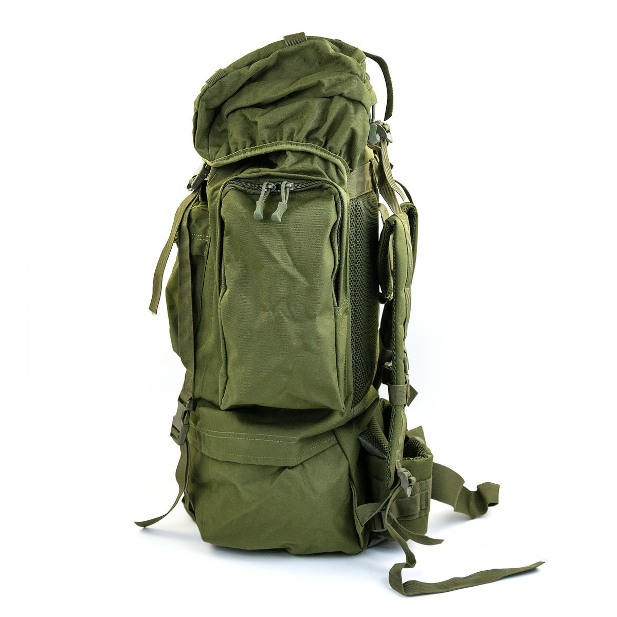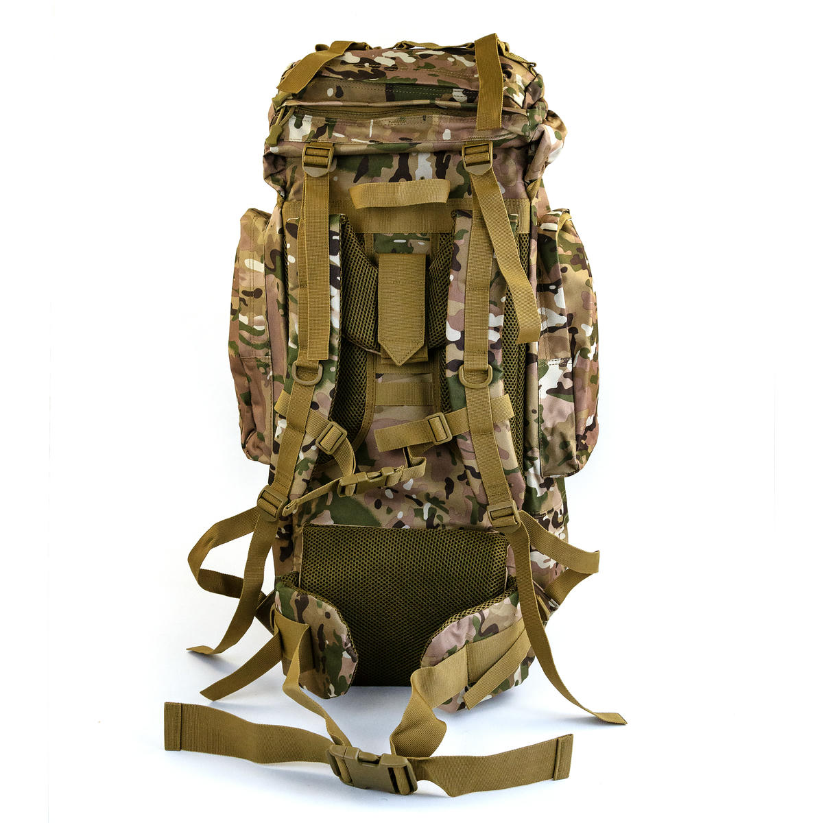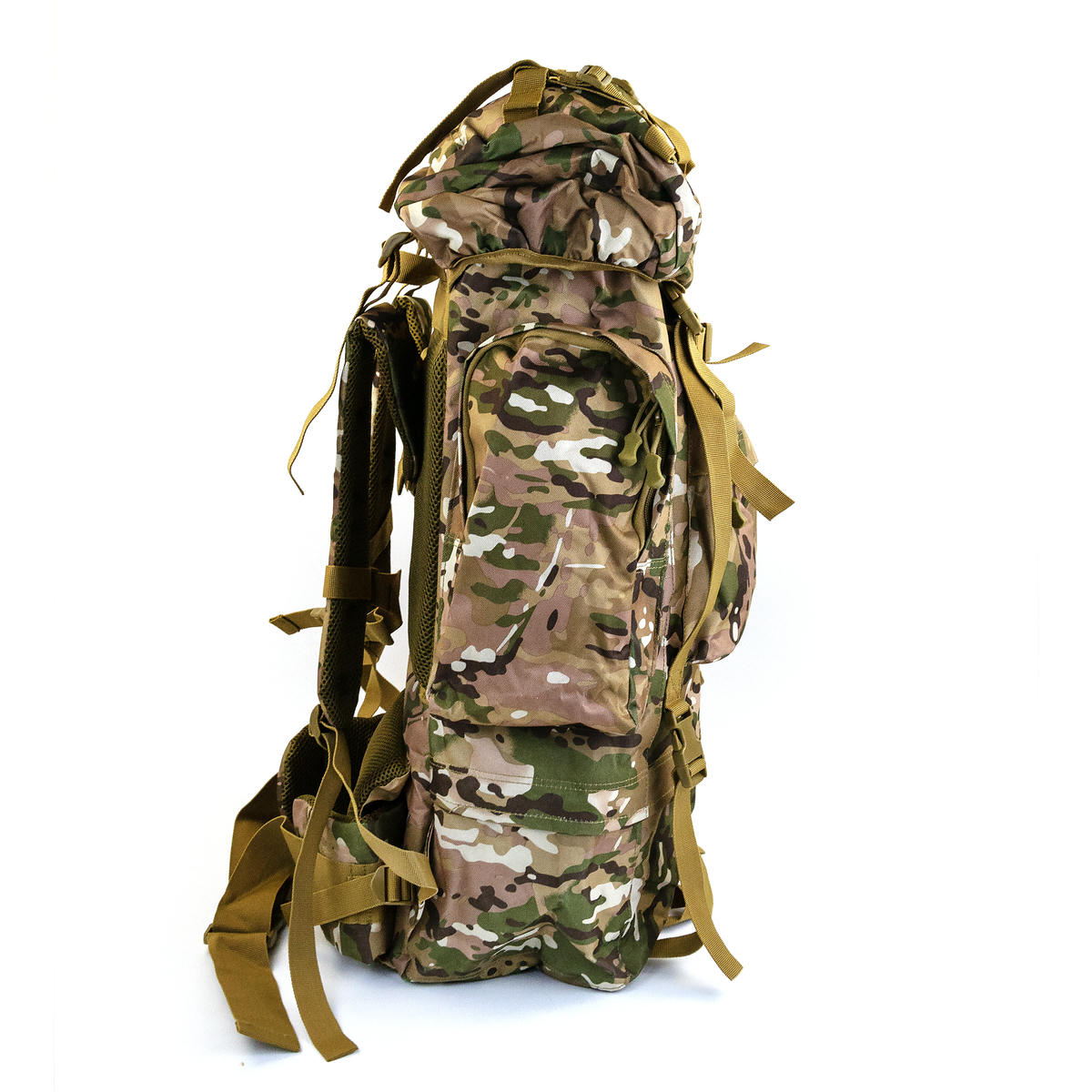 Тактический каркасный рюкзак объемом 75 литров. В спинку встроена алюминиевая рама, которая переносит основной вес с позвоночника на таз, позволяя комфортно нести груз.