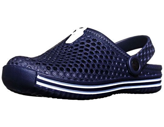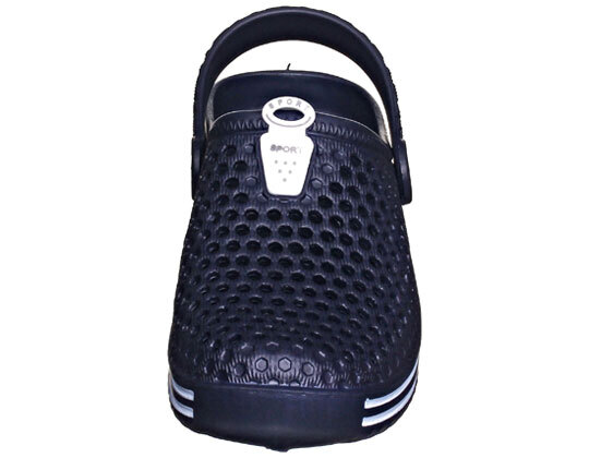 Вентиляционные отверстия в верхней части обуви обеспечивают свободную циркуляцию воздуха, пяточный ремешок фиксирует ступню при ходьбе, внутренняя поверхность подошвы обеспечивает анатомическую поддержку стопы и массажный эффект для еще большего комфорта.