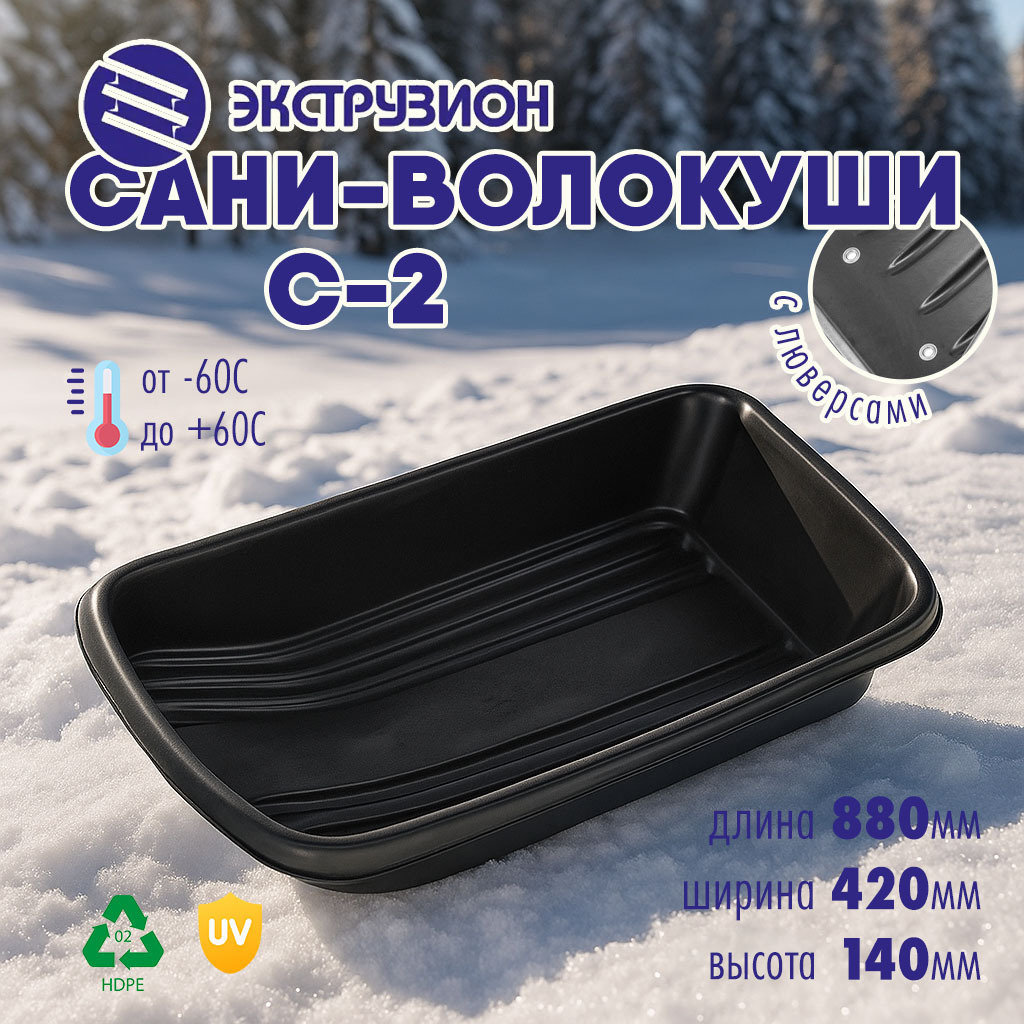 Сани произведены из ПНД (полиэтилен низкого давления) выдерживают перепады температуры -60С до +60С. Благодаря наличию светостабилизирующей добавки материал стоек к ультрафиолетовому излучению.