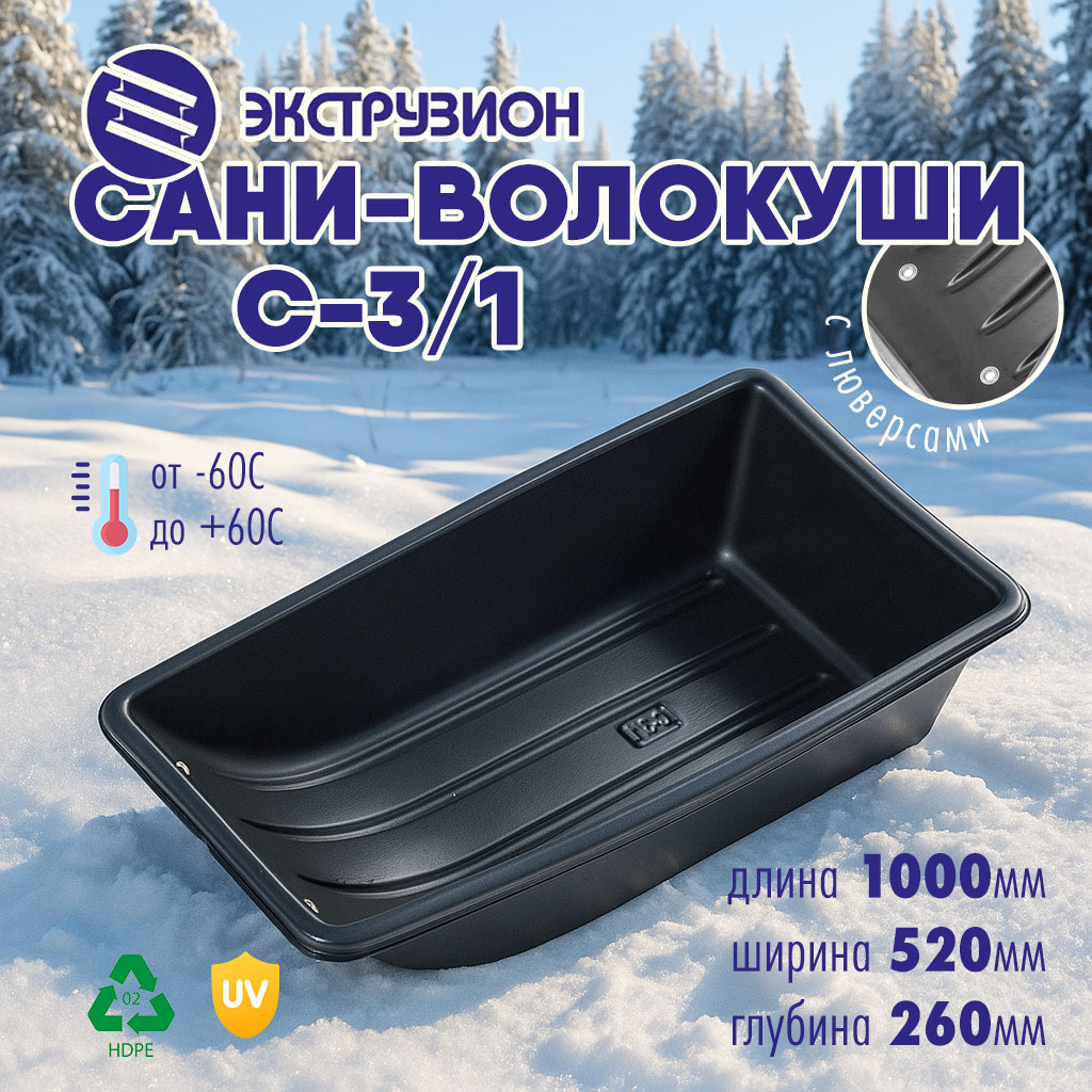 Сани волокуши для рыбаков и охотников. На санях установлены люверсы, что облегчает крепление упряжки (буксировочной веревки). Сани произведены из ПНД (полиэтилен низкого давления) выдерживают перепады температуры -60С до +60С.