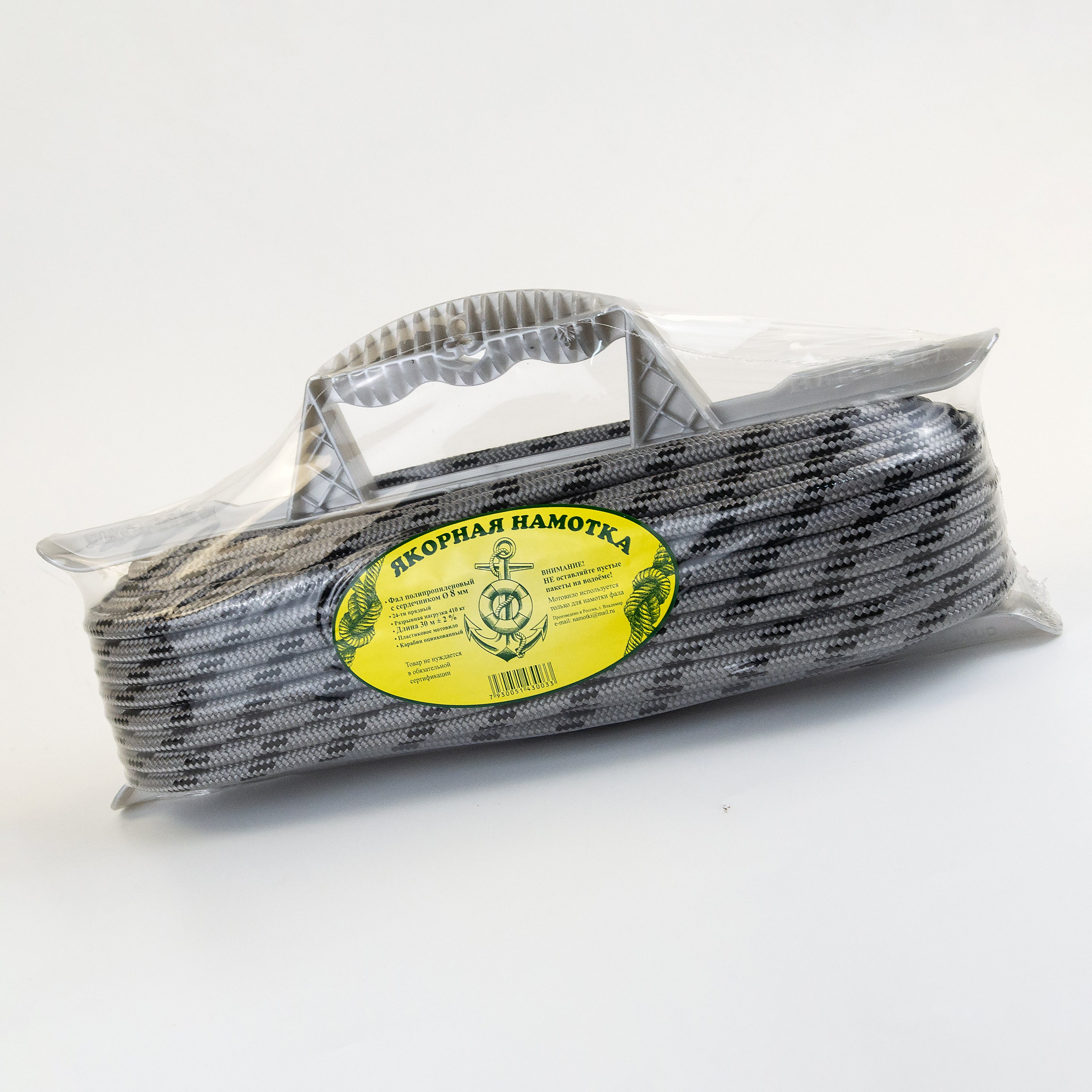 Полипропиленовый 16-прядный фал с сердечником на пластиковом мотовиле – для быстроты разматывания, удобства хранения и организации рабочего пространства в лодке.