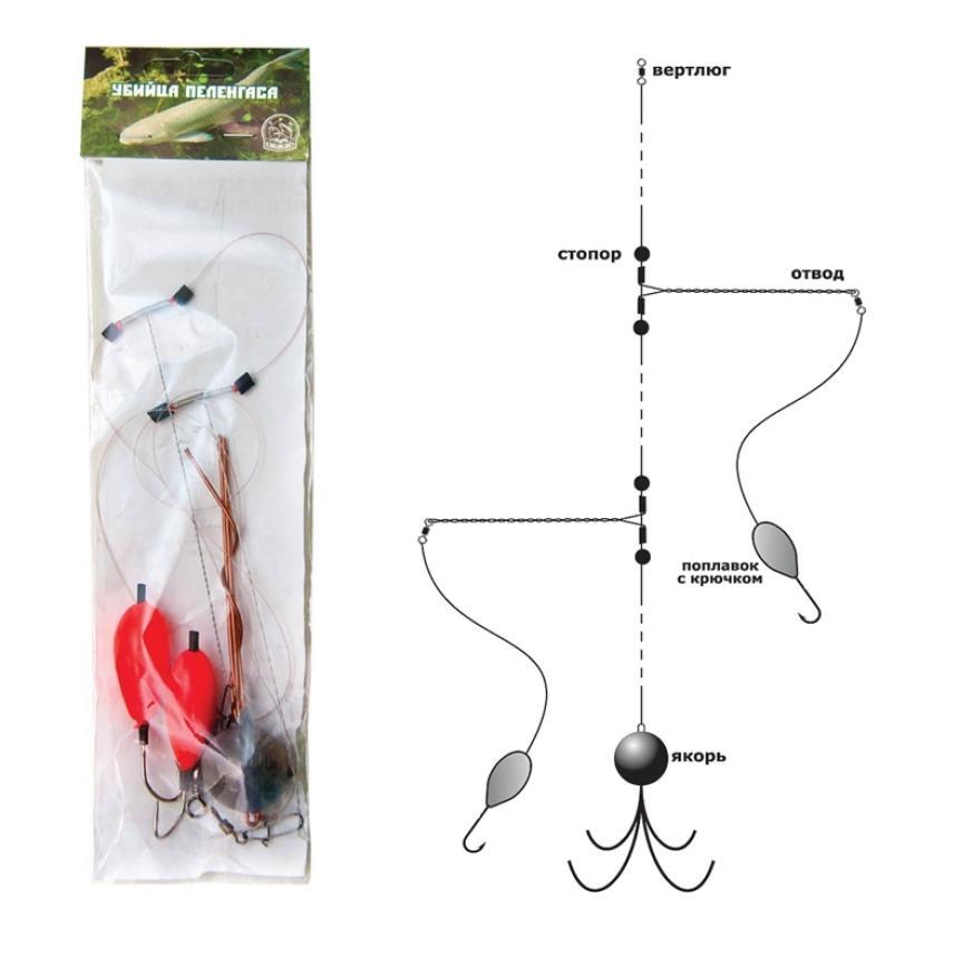 Снасть изготовлена из высококачественных материалов. В качестве привады могут использоваться различные каши, готовые теста и мастырки. Комплектация: вертлюг, стопор, отвод, поплавок с крючком, якорь.