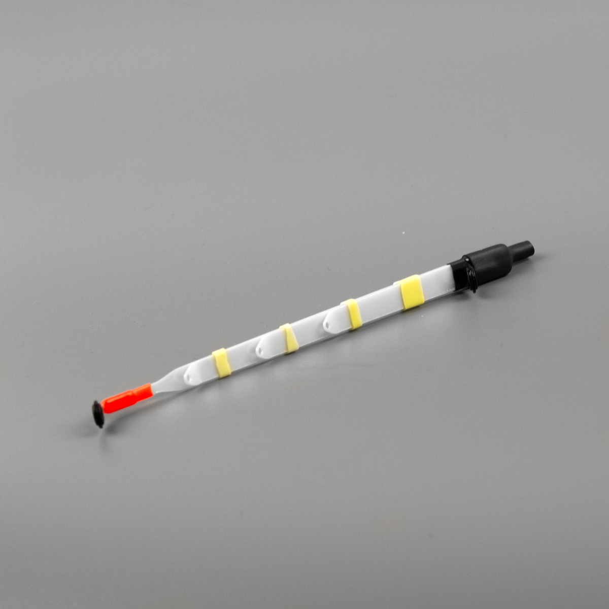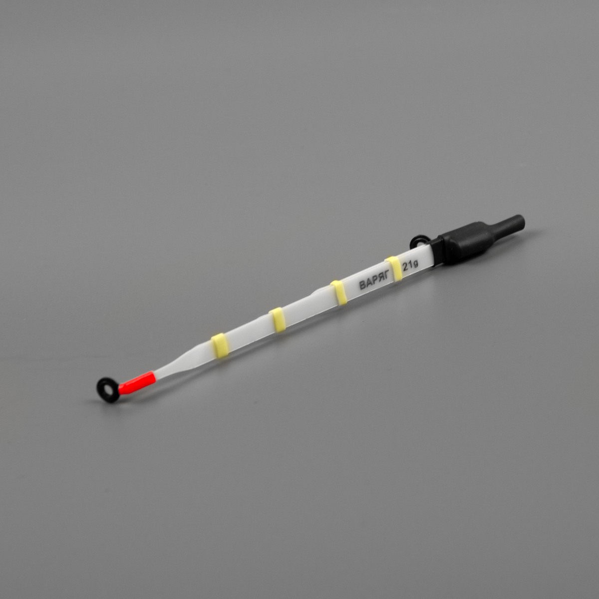 Материал сторожка отлично ведёт себя на морозе, не деформируется и держит форму. Состоит из четырех слоёв, имеет 3 отверстия и 2 мощных кольца под леску.