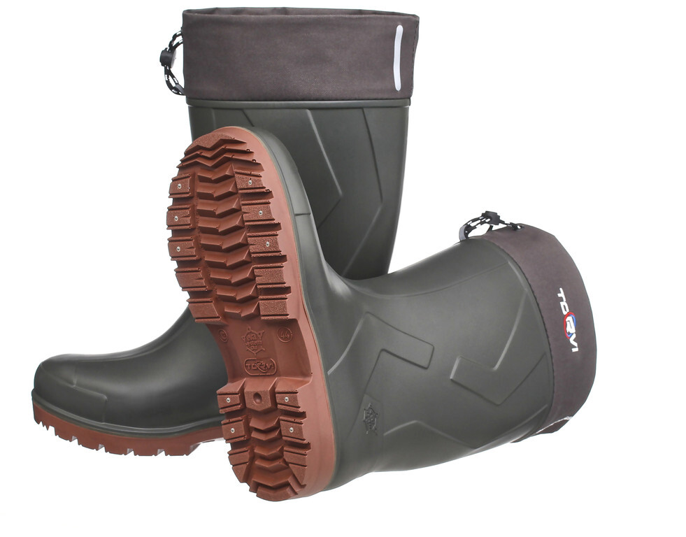 Сапоги ЭВА+ПУ Torvi Т-40° C с голенищем из ЭВА и прилитой шипованной подошвой из полиуретана (ПУ) – предназначены для рыбалки, охоты и других активных видов деятельности в холодный период года, когда необходима надёжная защита от внешних воздействий. Комфортные современные сапоги оснащены нескользящей подошвой из полиуретана. Материал ПУ (полиуретан) прочнее, чем ЭВА. Он имеет немногим больший вес, но позволяет обуви быть более устойчивой к механическим повреждениям.