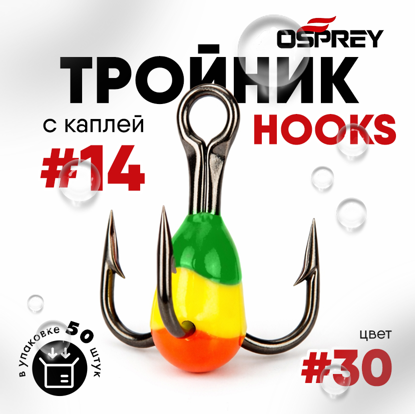 Тройник-капля в разных цветовых решениях. Рекомендуется для замены штатного крючка на вертикальных блеснах, балансирах. Заменив "родной" тройник на крючок с каплей, можно добиться многократного улучшения клева окуня, который проявляет интерес к приманке, но не решается на атаку.