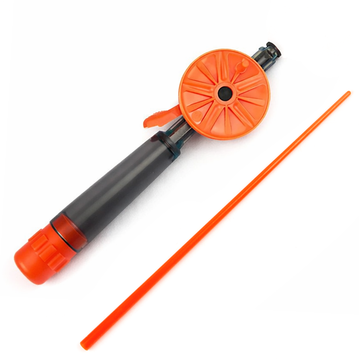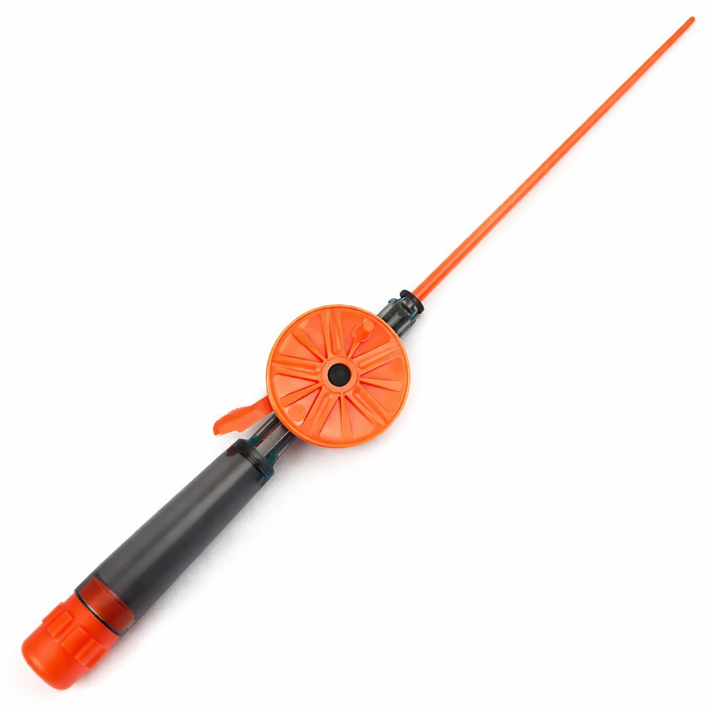 В ручке имеется объемная полость, которую можно использовать в качестве контейнера для принадлежностей и приманок. Длина ручки 115 мм для комфортной рыбалки в объемных рукавицах, при этом клавиша управляется большим пальцем руки. Шпуля из морозостойкого АБС-пластика, что снижает трение о корпус. Хлыстик средней жесткости, также изготовленный из поликарбоната, убирается внутрь корпуса.