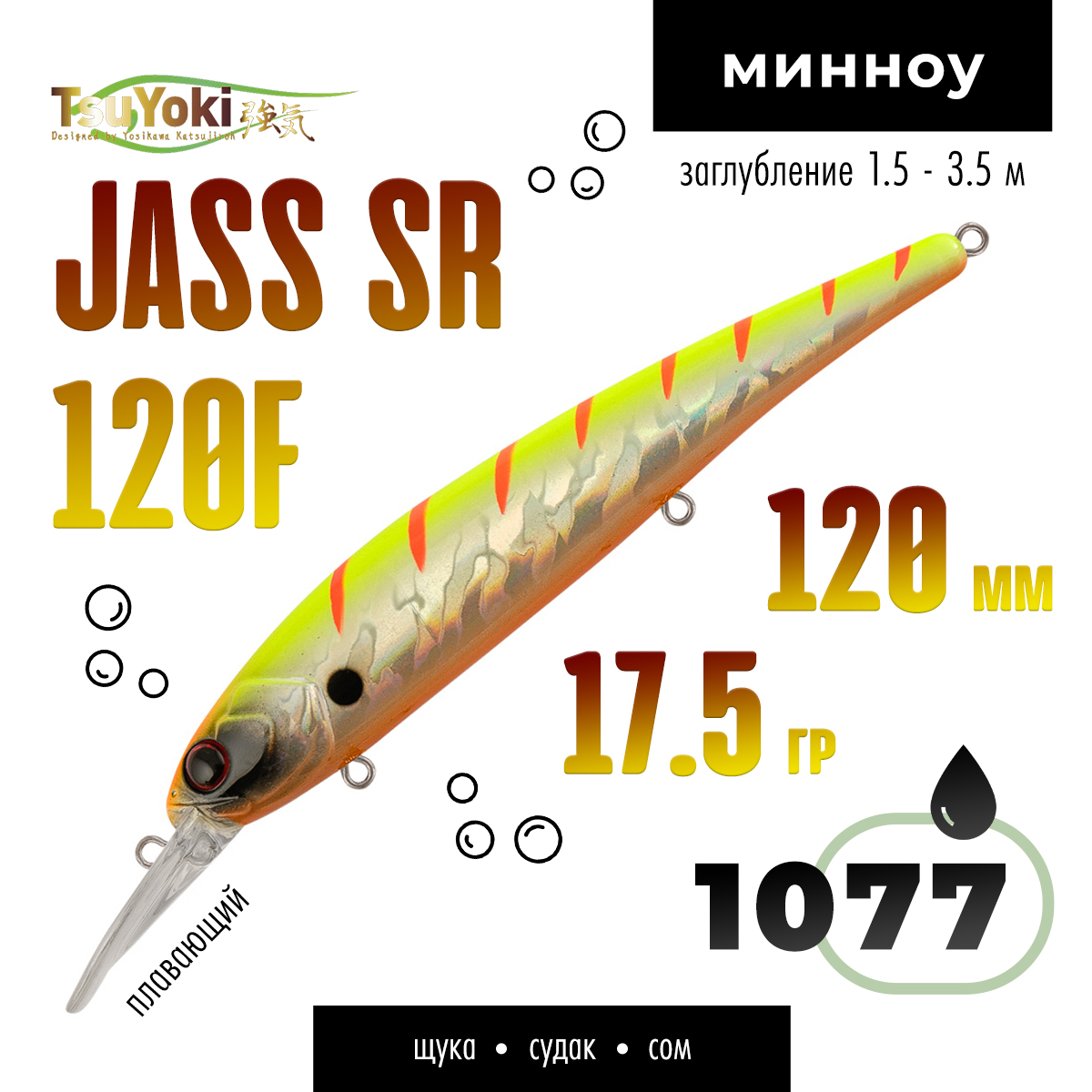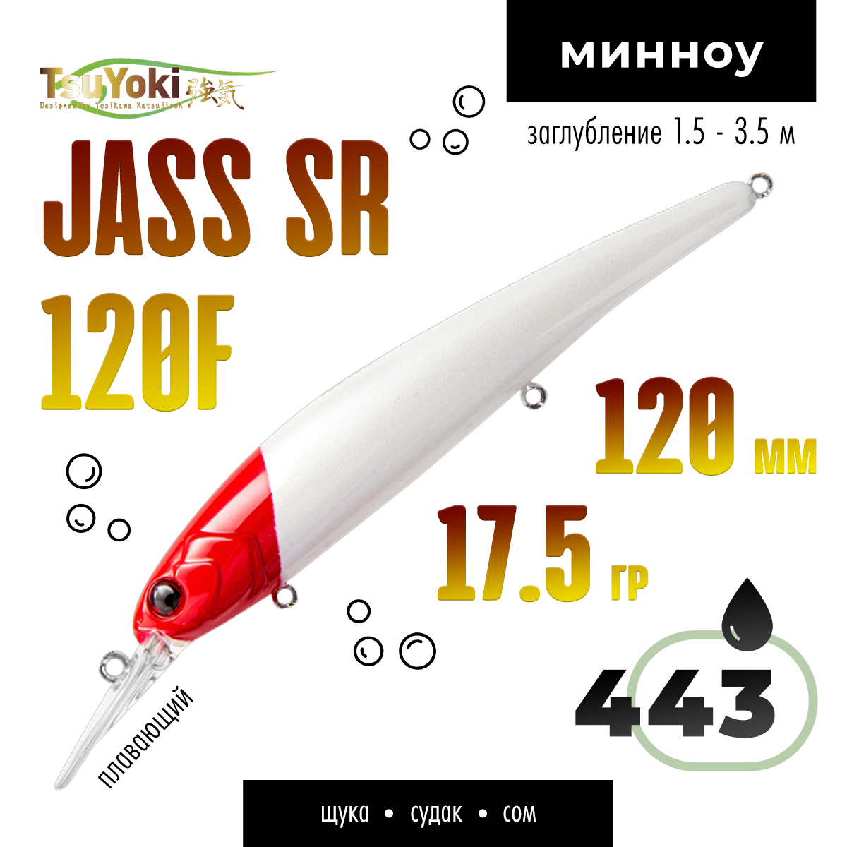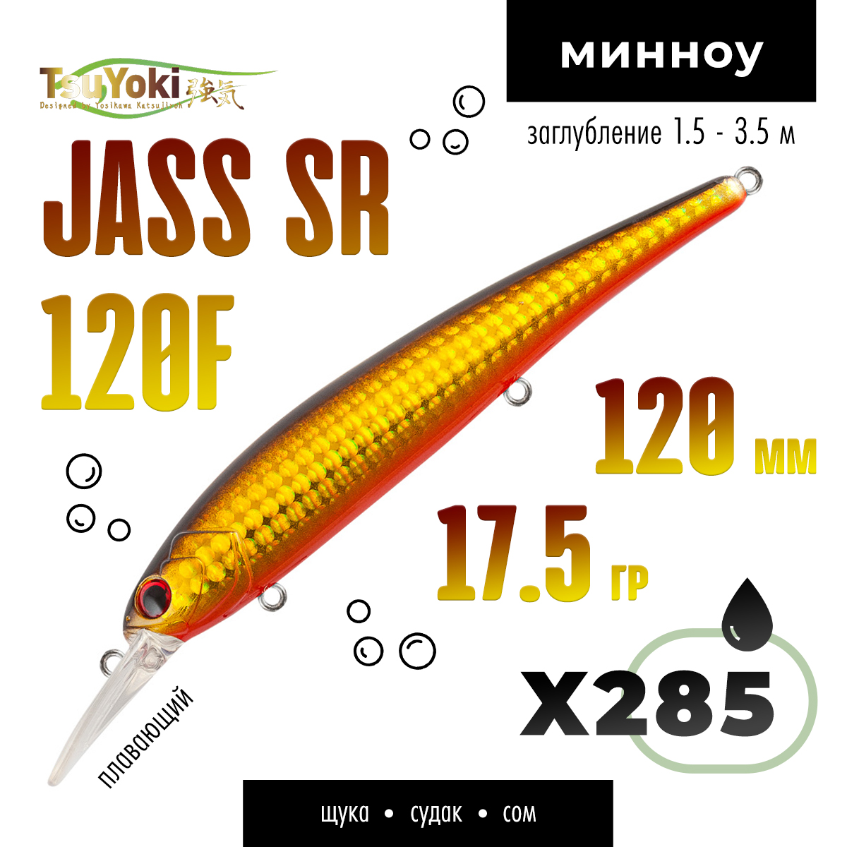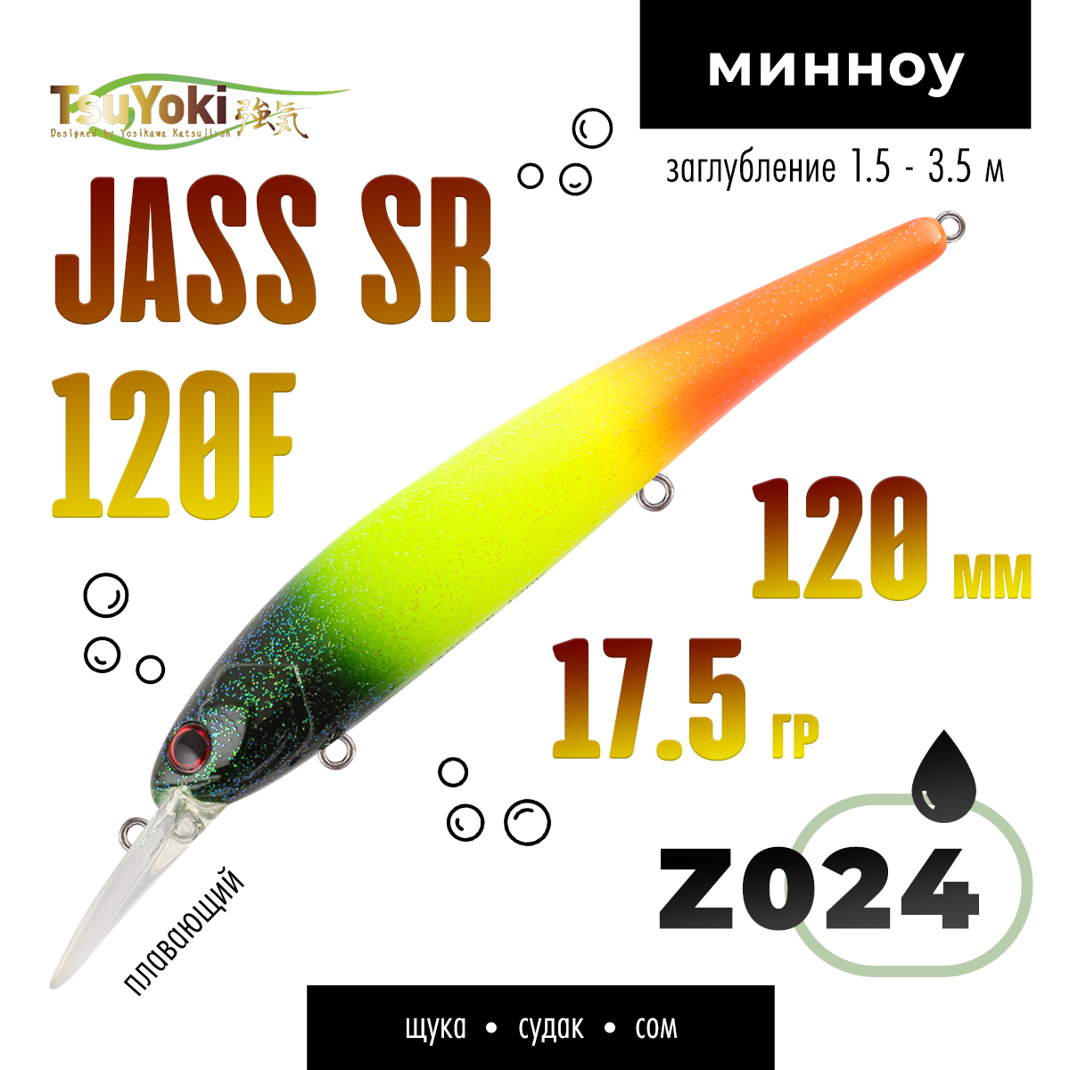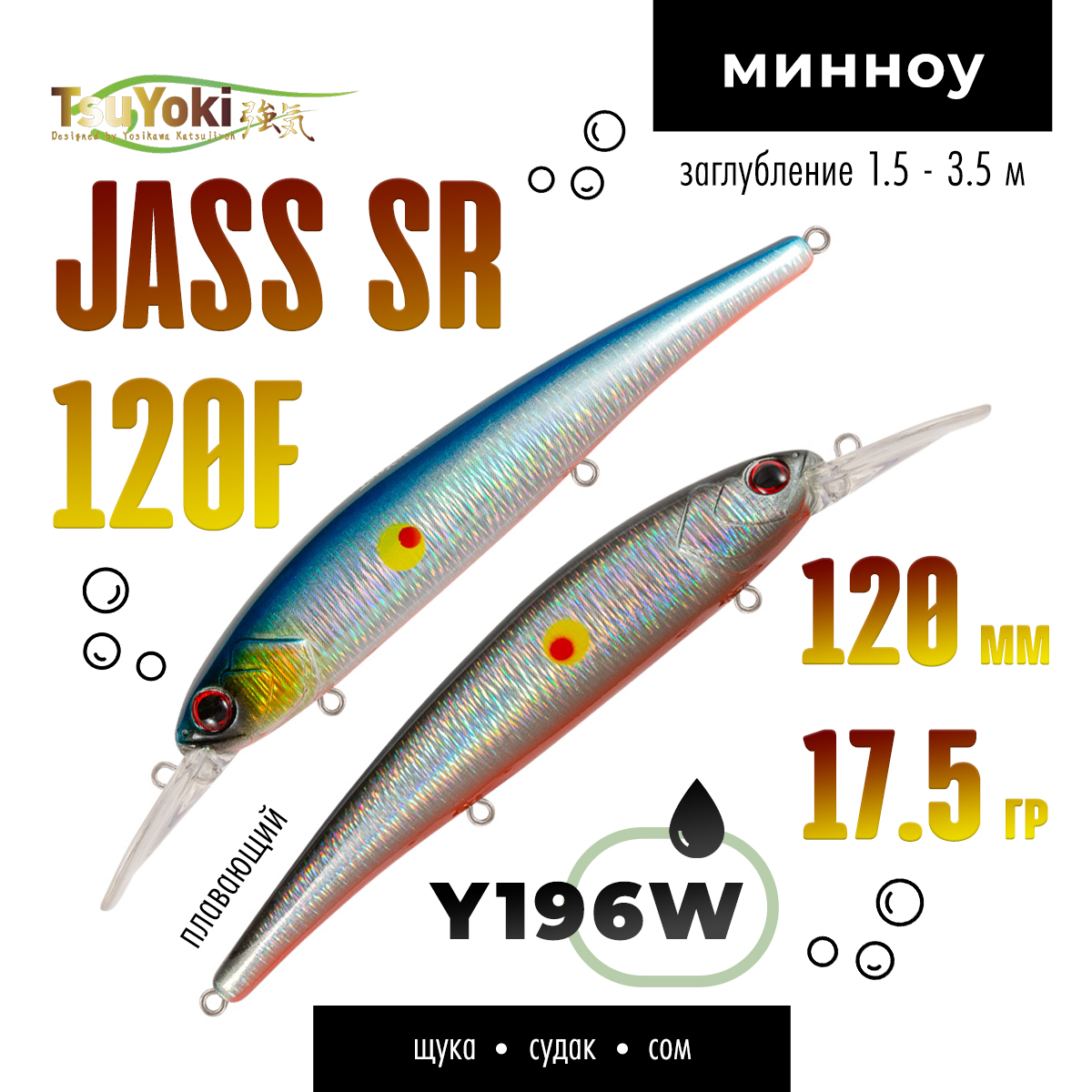 Воблер TsuYoki JASS SR 120F предназначен для ловли такой трофейной рыбы как судак, щука, сом методом троллинг. Также данной моделью можно ловить и "в заброс", равномерной проводкой, но надо помнить, что TsuYoki JASS SR 120F упористый воблер, поэтому надо подбирать удилище соответствующего теста. При отпуске шнура ( 0.2 мм ) около 40-метров и скорости катера 3.5 - 4.0 км / час - TsuYoki JASS SR 120F заглубляется до 4 метров, показывая при этом малоамплитудную высокочастотную игру, характерную для приманок хорошо работающих по судаку.