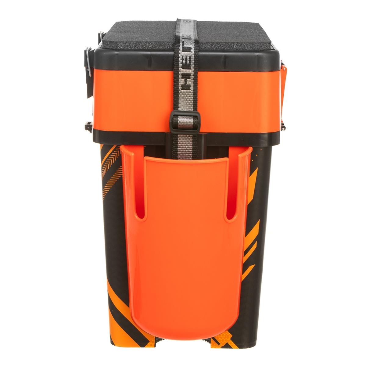 Система навесных пластиковых карманов позволяет удобно расположить все, что должно находиться под рукой: багорик, запасные удочки, черпак и прочие рыболовные инструменты. Общий полезный объем ящиков за счет таких «карманов» значительно увеличивается. Их можно легко навесить и снять уже находясь на месте ловли.