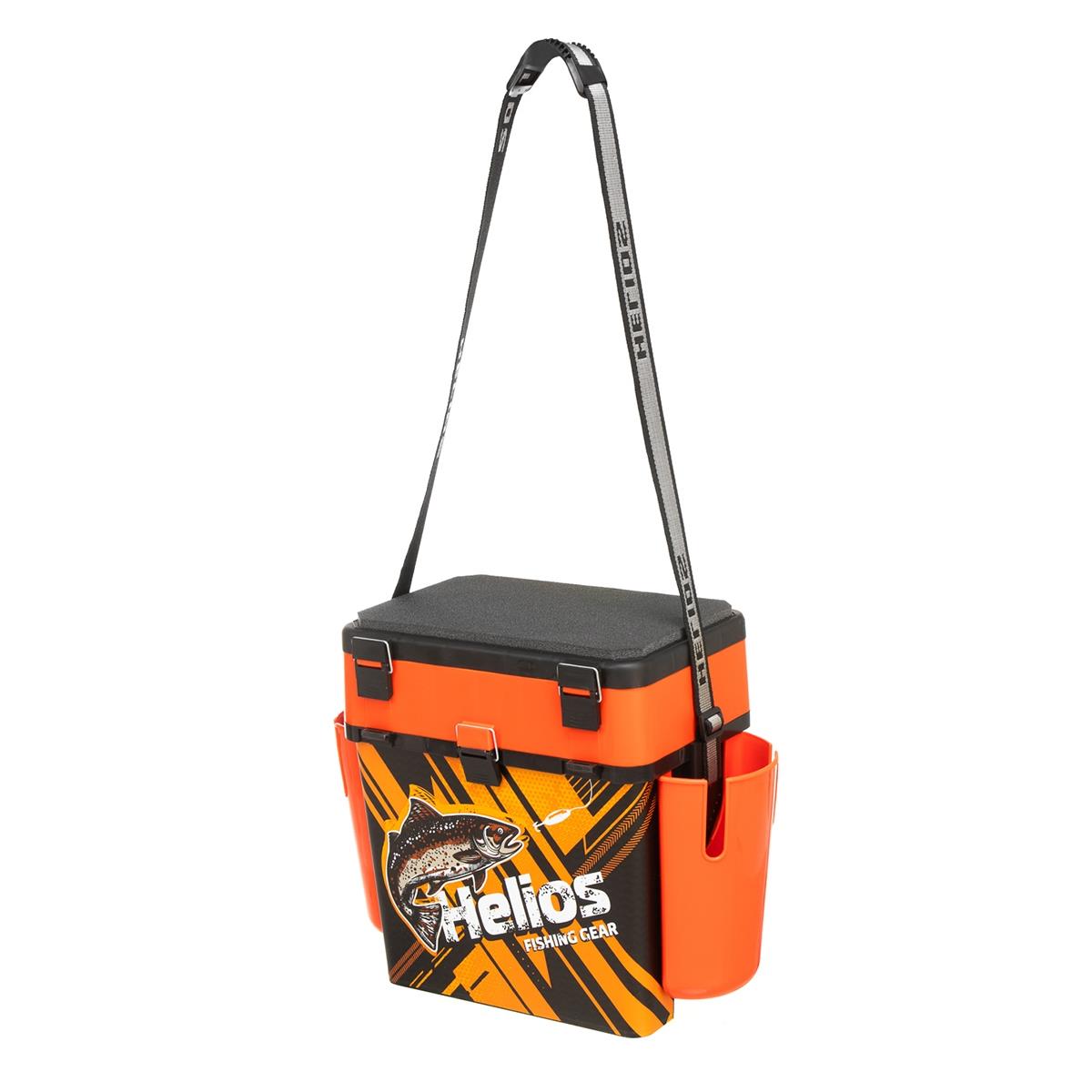 Ящик рыболовный зимний с карманами торговой марки Helios с индивидуальным дизайном с изображением форели изготовлен из ударопрочного, морозостойкого и в то же время легкого пластика, обеспечивает надежное хранение и транспортировку рыболовных снастей.