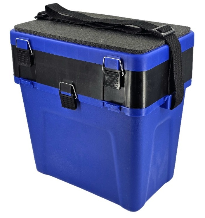 Вместительный ящик для рыболовных принадлежностей. В комплекте ремень (может находится внутри ящика). Имеет 4 отделения для приманок. Размер отделений 8х14 см. Размер ящика 380х360х240 мм.