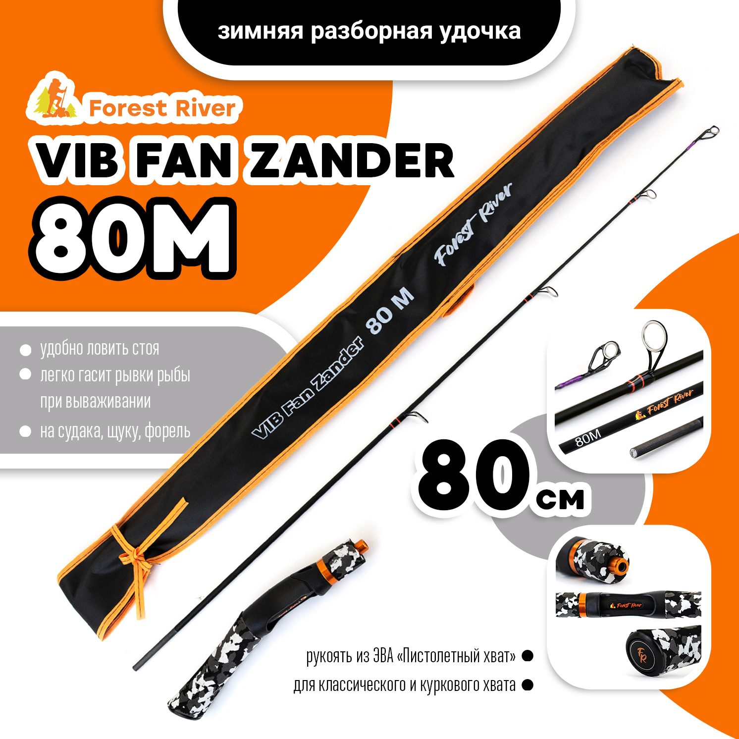 Зимняя разборная удочка Forest River VIB Fan Zander 80M